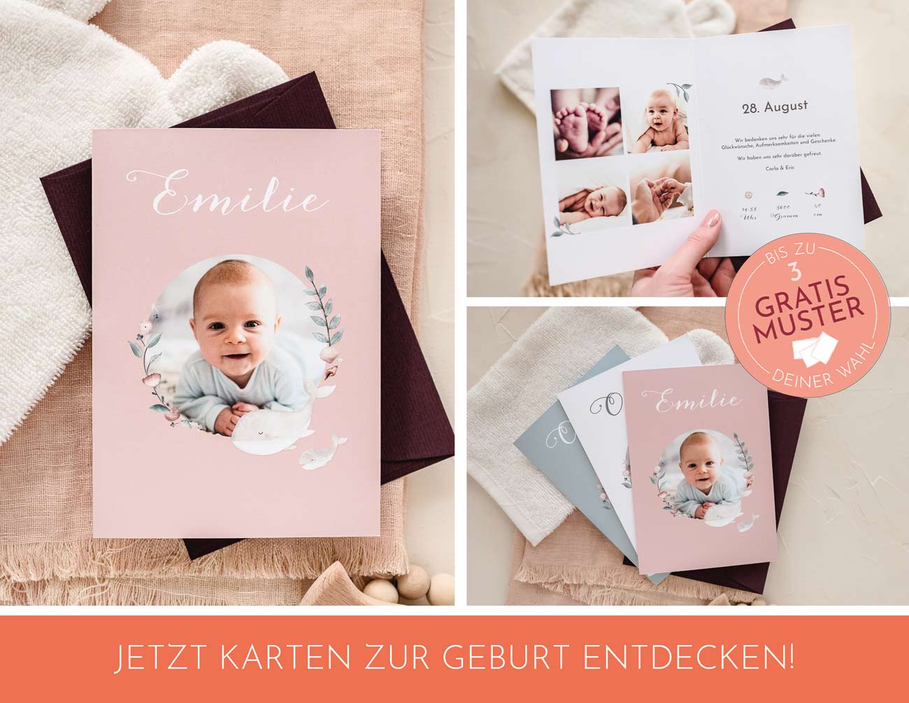 Psst…: Wenn dein kleiner Liebling dann endlich da ist und du seine ersten Momente festhalten möchtest, erfährst du hier alles für dein erstes Babyshooting. Diese Bilder könnt ihr später für eure Geburtskarten nutzen, die ihr ganz nach euren Vorstellungen gestalten könnt. Egal, ob ihr eine Geburtskarte für ein Mädchen, eine Geburtskarte für einen Jungen oder eine Geburtskarte für Zwillinge sucht –nutzt die Möglichkeit, die Geburt eures Babys auf besondere Weise bekanntzugeben.