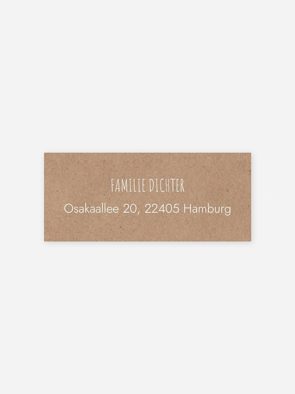 Vorgedruckt und versandfertig: Der Aufkleber "Bunte Taufe" ist mit Ihrer Adresse beschriftet: So geht das Verschicken extraschnell.