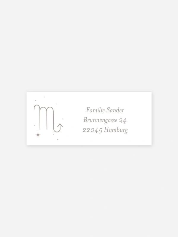 Unsere praktischen Absenderaufkleber im Design "Sternbild Skorpion" machen jeden Umschlag zum hübschen Blickfang.