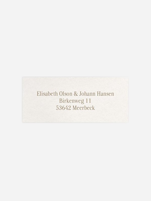 Gestalten Sie die selbstklebenden Absenderaufkleber "Dieser eine Tag" mit Ihrer eigenen Adresse. So sind Ihre Umschläge nicht nur praktisch beschriftet, sondern auch optisch perfekt abgerundet zu Ihrer Hochzeitseinladung