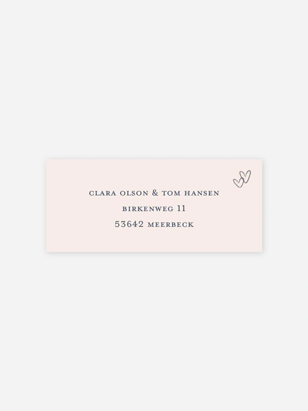 Gestalten Sie die selbstklebenden Absenderaufkleber "Immer und ewig" mit Ihrer eigenen Adresse. So sind Ihre Umschläge nicht nur praktisch beschriftet, sondern auch optisch perfekt abgerundet zu Ihrer Hochzeitseinladung.