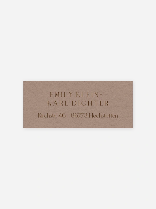 Gestalten Sie die selbstklebenden Absenderaufkleber "Pure Initials" mit Ihrer eigenen Adresse. So sind Ihre Umschläge nicht nur praktisch beschriftet, sondern auch optisch perfekt abgerundet zu Ihrer Hochzeitseinladung.