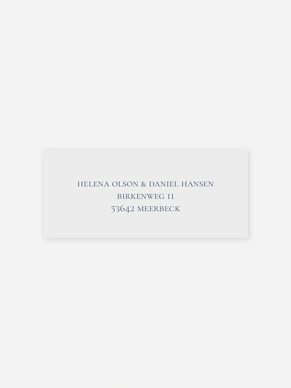 Gestalten Sie die selbstklebenden Absenderaufkleber "Pures Versprechen" mit Ihrer eigenen Adresse. So sind Ihre Umschläge nicht nur praktisch beschriftet, sondern auch optisch perfekt abgerundet zu Ihrer Hochzeitseinladung.