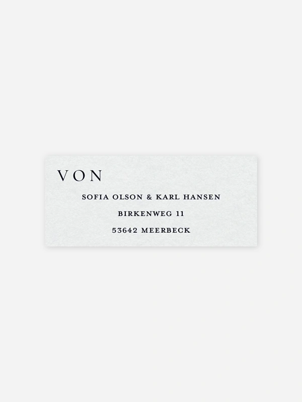 Gestalten Sie die selbstklebenden Absenderaufkleber "Zarte Liebe" mit Ihrer eigenen Adresse. So sind Ihre Umschläge nicht nur praktisch beschriftet, sondern auch optisch perfekt abgerundet zu Ihrer Hochzeitseinladung