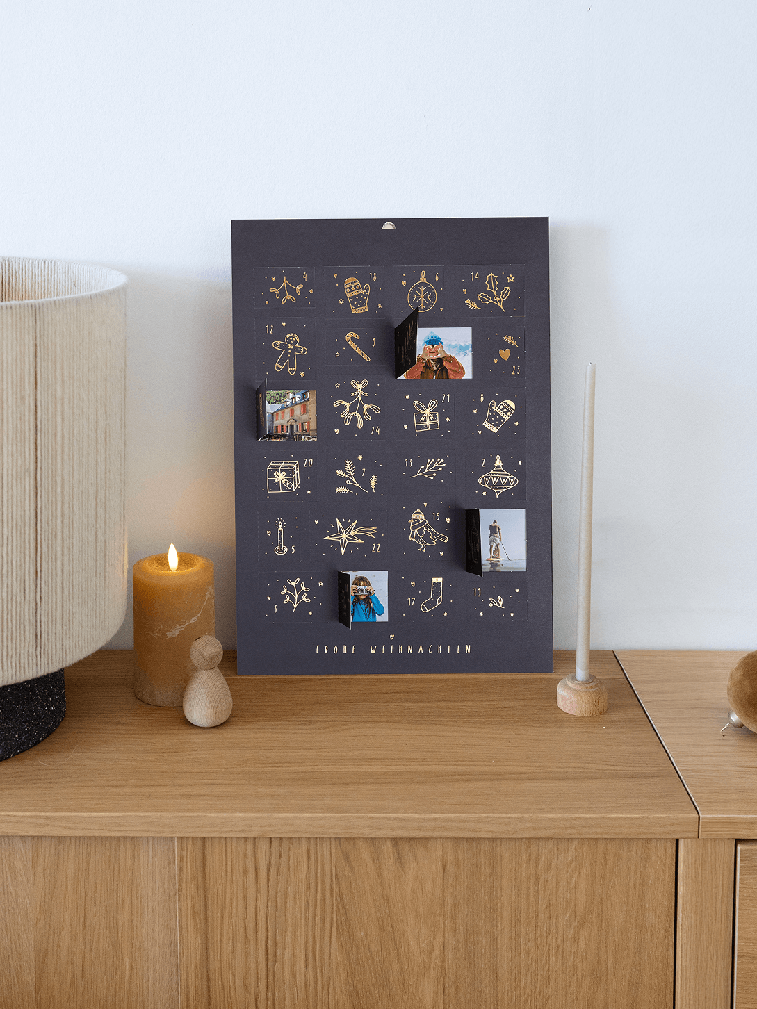 Mit liebevoll gestalteten Illustrationen, feinen Golddetails und einem edlen Druck auf hochwertigem Papier wird jeder deiner persönlichen Adventskalender zu einem echten Hingucker. Deine Fotos kommen auf dem Poster brillant zur Geltung – gestochen scharf, mit kräftigen Farben und in originalgetreuer Qualität.