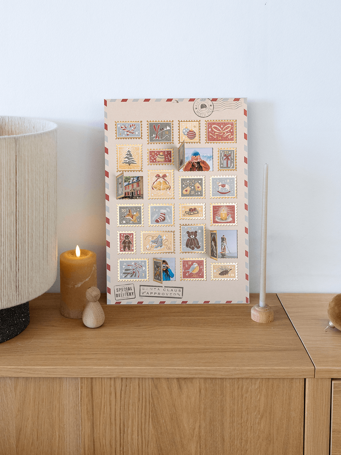 Mit unserem Adventskalender "Post von Santa" flattert jeden Tag ein lieber Gruß ins Haus und verkürzt die Wartezeit auf Weihnachten. Hinter 24 Türchen im nostalgischen Briefmarken-Look verbergen sich deine liebsten Menschen und Momente des Jahres. Die charmanten, weihnachtlichen Illustrationen und edel schimmernden Gold-Akzente machen diesen persönlichen Adventskalender zu einem echten Schmuckstück. So kannst du jeden Tag eine kleine, liebevolle Erinnerung teilen und ein Lächeln verschenken.