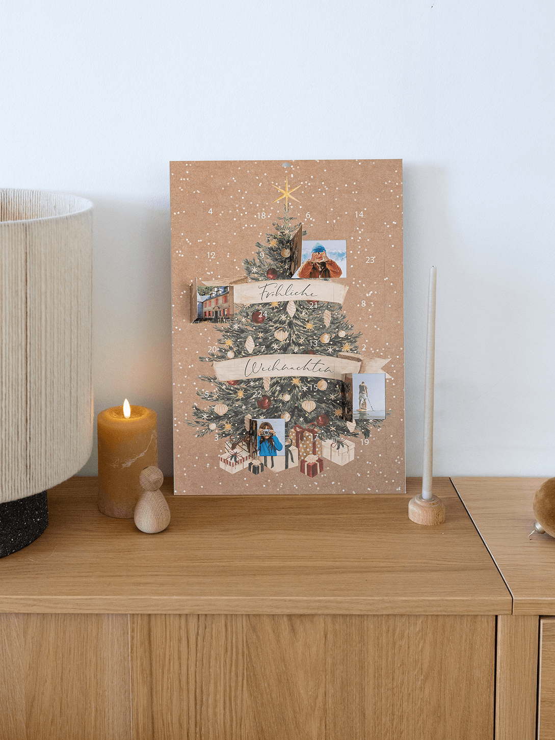Mit liebevoll gestalteten Illustrationen, feinen Golddetails und einem edlen Druck auf hochwertigem Papier wird jeder deiner persönlichen Adventskalender zu einem echten Hingucker. Deine Fotos kommen auf dem Poster brillant zur Geltung – gestochen scharf, mit kräftigen Farben und in originalgetreuer Qualität.