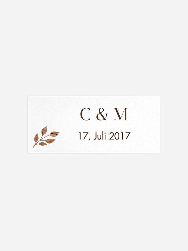 Machen Sie Ihre Hochzeitspapeterie perfekt: Veredeln Sie Ihre Gastgeschenke oder einzelne Dekoelemente mit dem Aufkleber "Auf Holz".