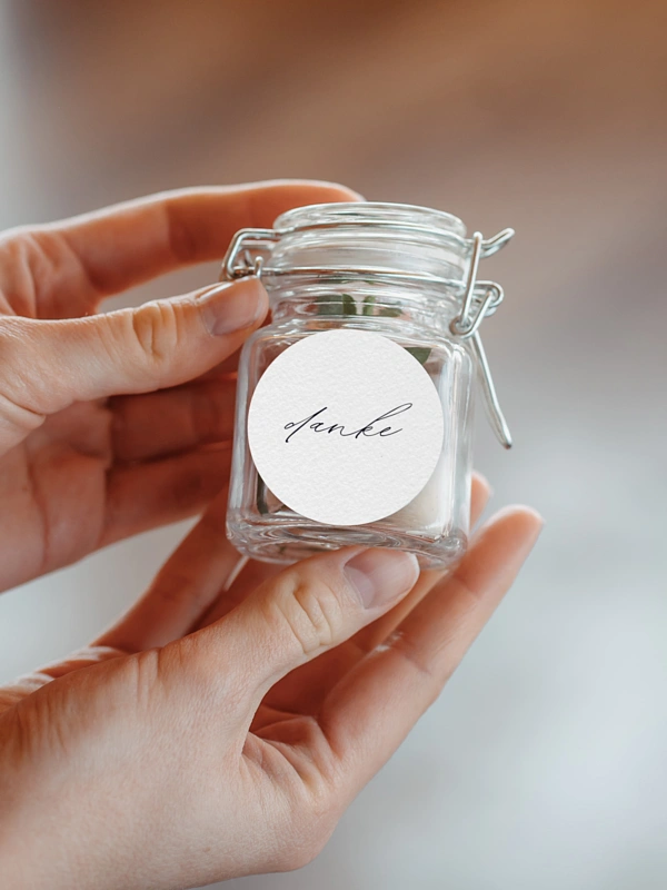 Personalisieren Sie die Hochzeitssticker "Minimal Aesthetic" mit Ihren Namen und verschönern Sie damit die Gastgeschenke für Ihre Lieben.