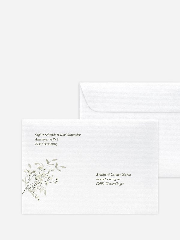 Der personalisierbare Briefumschlag "Love in Bloom" ergänzt Ihre Einladung im passenden Design und macht Ihre Papeterie komplett. So beginnt der besondere Anlass schon mit dem ersten Blick in den Briefkasten.