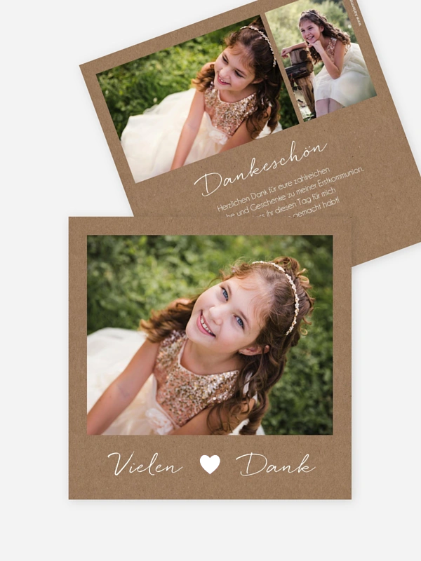 Ein ganz besonderer Kommunionsgottesdienst und ein schönes Fest mit Freunden und Familie: Wählen Sie ein Foto aus, das Bände spricht, und versenden Sie persönliche Worte mit der modernen Danksagung "Bohemian Chic".
