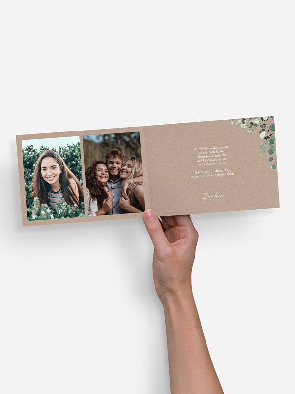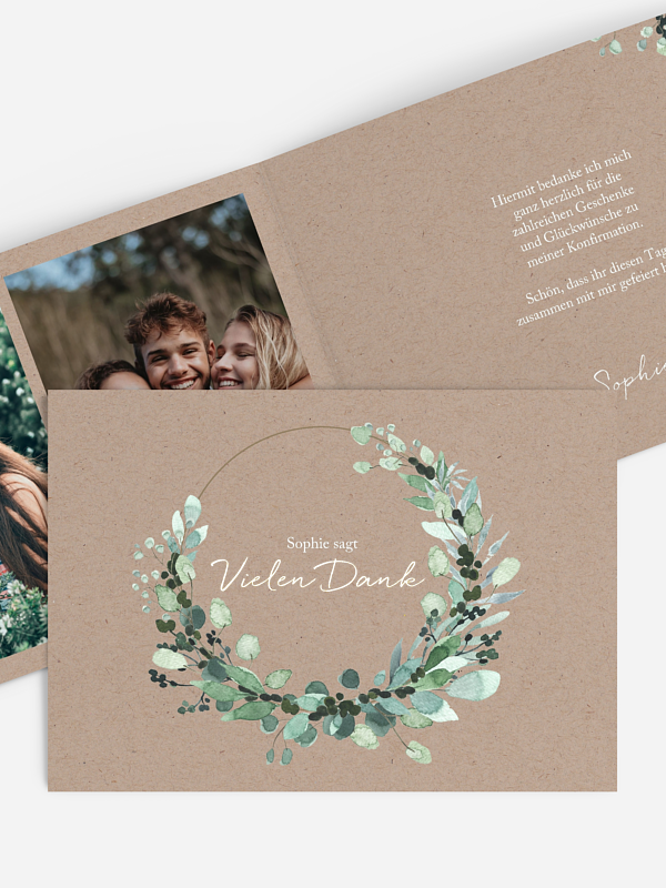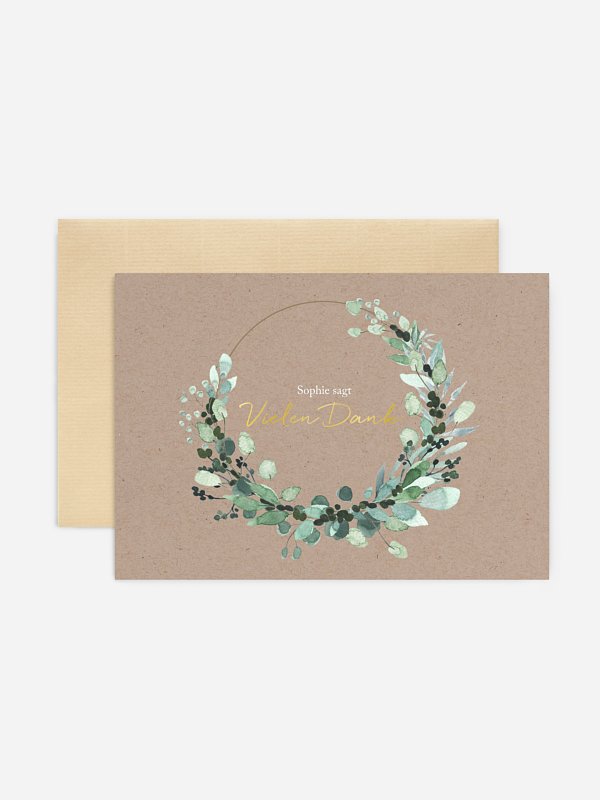 Es war ein wunderschöner Tag und Sie möchten sich angemessen bei allen Gästen bedanken? Total im Trend liegen Sie mit der Dankeskarte "All the Greenery".