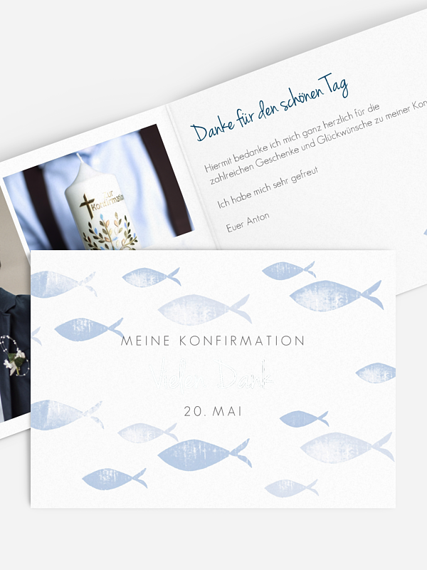 Stilvoll DANKE sagen – mit der Dankeskarte „Fischschwarm“ gelingt es Ihnen dem Anlass entsprechend.