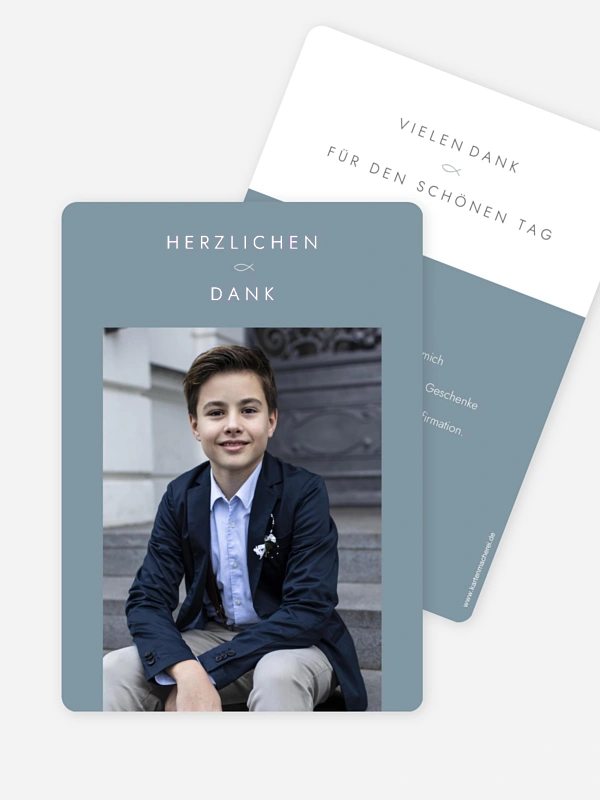 Vielen Dank für die gemeinsam verbrachte Zeit, die Geschenke und lieben Worte: Nach der Konfirmation bedanken Sie sich mit der Danksagung “Mein Weg”: Eine stilvolle, klassische Karte, die als wunderbare Foto-Erinnerung noch lange Freude bereiten wird.