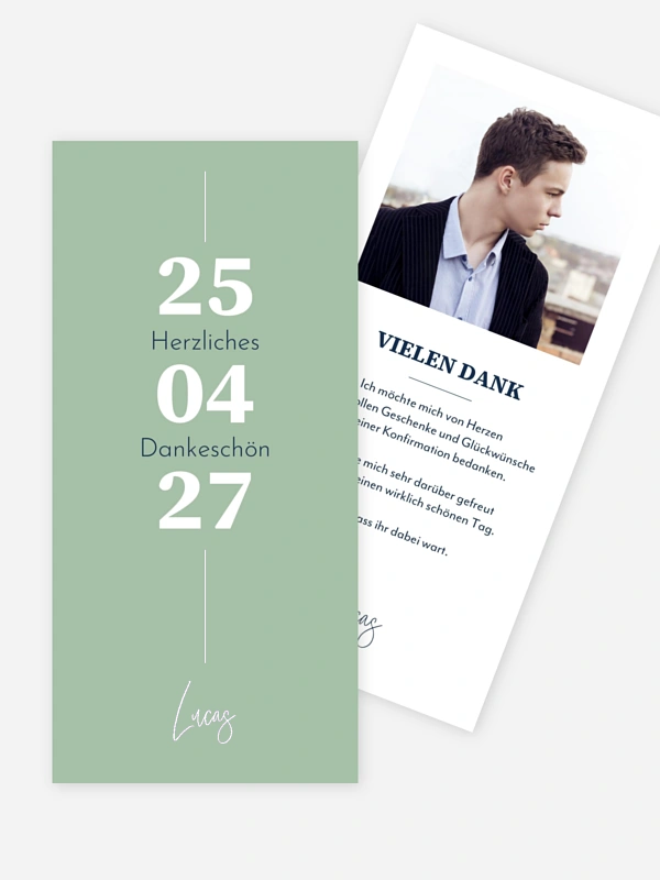 Der perfekte Abschluss eines besonderen Tages: Nach der Konfirmation können Sie mit der Danksagung "Modern Font" allen Angehörigen und Freunden einen Fotogruß mit persönlichen Worten des Dankes zusenden.