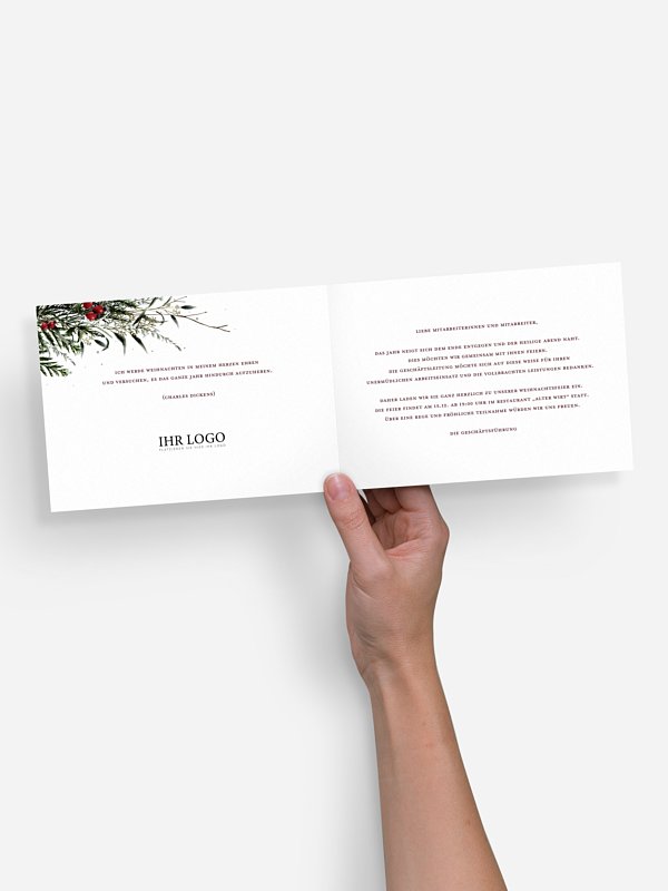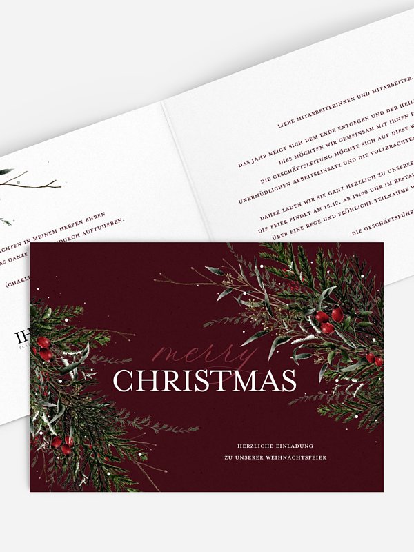 Verschicken Sie nicht nur eine Einladungskarte zur Weihnachtsfeier, sondern versetzen Sie ihre Mitarbeiter zugleich in winterliche und weihnachtliche Stimmung.