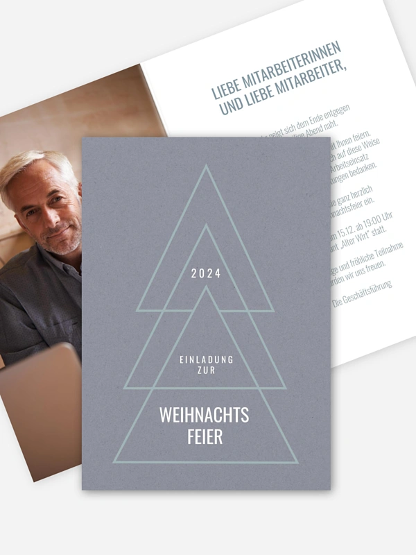Verschicken Sie nicht nur eine Einladungskarte zur Weihnachtsfeier, sondern versetzen Sie ihre Mitarbeiter zugleich in winterliche und weihnachtliche Stimmung mit der Karte "Fine Lines".