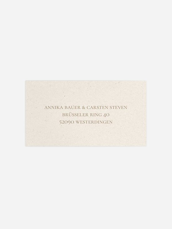 Personalisieren Sie die selbstklebenden Empfängeraufkleber "A Promise" mit den Adressen Ihrer Gäste und bringen Sie sie direkt auf den Umschlägen an – schnell, ordentlich und stilvoll.