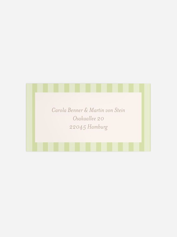 Personalisieren Sie die selbstklebenden Empfängeraufkleber "Band der Liebe" mit den Adressen Ihrer Gäste und bringen Sie sie direkt auf den Umschlägen an – schnell, ordentlich und stilvoll.