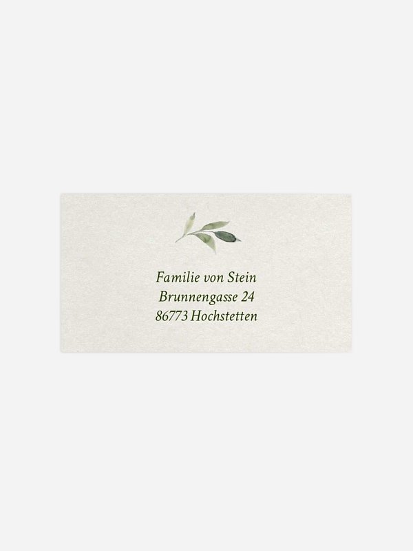Die selbstklebenden Empfängeraufkleber "Botanical Blessing" passen perfekt zur gleichnamigen Einladung und ersparen Ihnen das Beschriften der Kuverts per Hand.