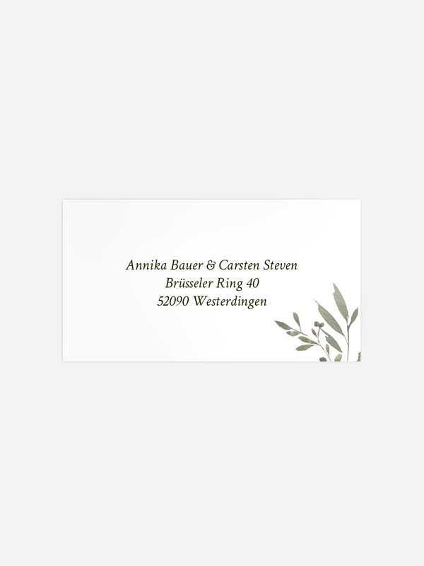 Personalisieren Sie die selbstklebenden Empfängeraufkleber "Botanical Gate" mit den Adressen Ihrer Gäste und bringen Sie sie direkt auf den Umschlägen an – schnell, ordentlich und stilvoll.