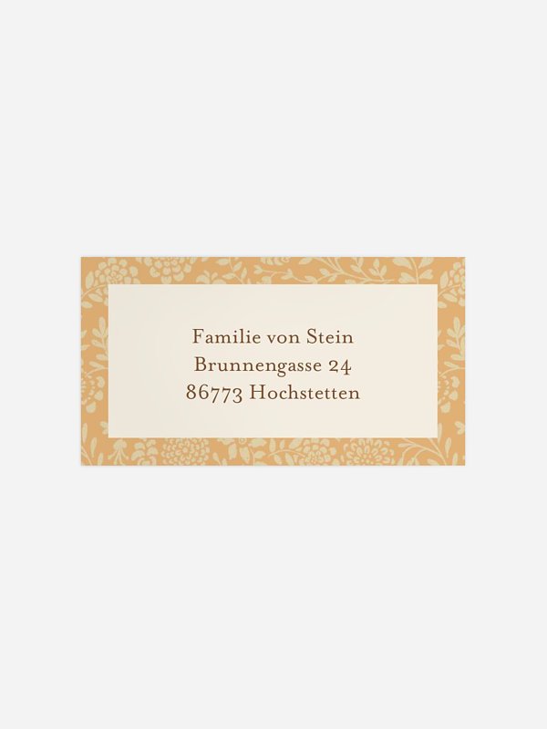Mit dem Empfängeraufkleber "Classic Garden" bekommt eure Post zur Taufe schon vor dem Öffnen ein warmes, liebevolles Gefühl. Der zarte Rahmen wirkt ruhig und zeitlos und macht aus jedem Umschlag einen kleinen Vorgeschmack auf euren besonderen Tag. Ob für Einladungen zur Taufe oder die Dankeskarte danach: So sieht alles wie aus einem Guss aus. Deine Adressaufkleber zur Taufe gestaltest du ganz einfach im Gestaltungs-Tool, und wir sorgen für hochwertigen Druck und schnelle Lieferung.