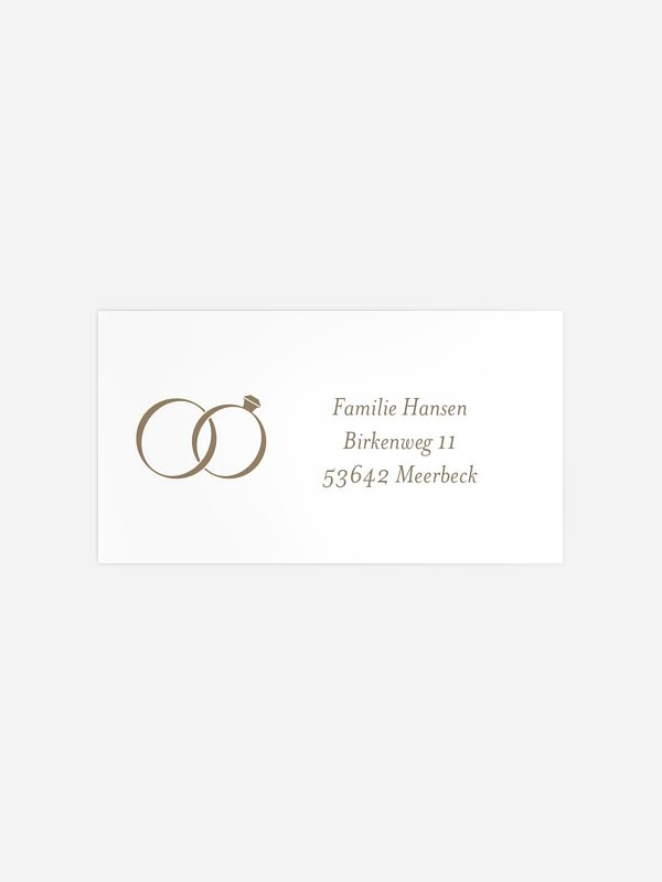 Personalisieren Sie die selbstklebenden Empfängeraufkleber "Classic Romance" mit den Adressen Ihrer Gäste und bringen Sie sie direkt auf den Umschlägen an – schnell, ordentlich und stilvoll.