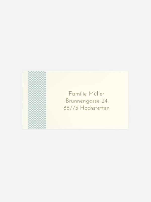 Die selbstklebenden Empfängeraufkleber "Sacred Wave" passen perfekt zur gleichnamigen Einladung und ersparen Ihnen das Beschriften der Kuverts per Hand.