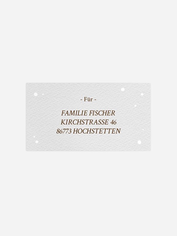Gestalten Sie Ihre Postsendungen stilvoll und mühelos mit unseren personalisierbaren Empfängeraufklebern "Schneemärchen"! Diese hochwertigen Aufkleber sind die perfekte Ergänzung zu unserer exklusiven Designserie und erleichtern Ihnen das Versenden von Briefen und Karten, indem sie das manuelle Beschriften per Hand überflüssig machen.
