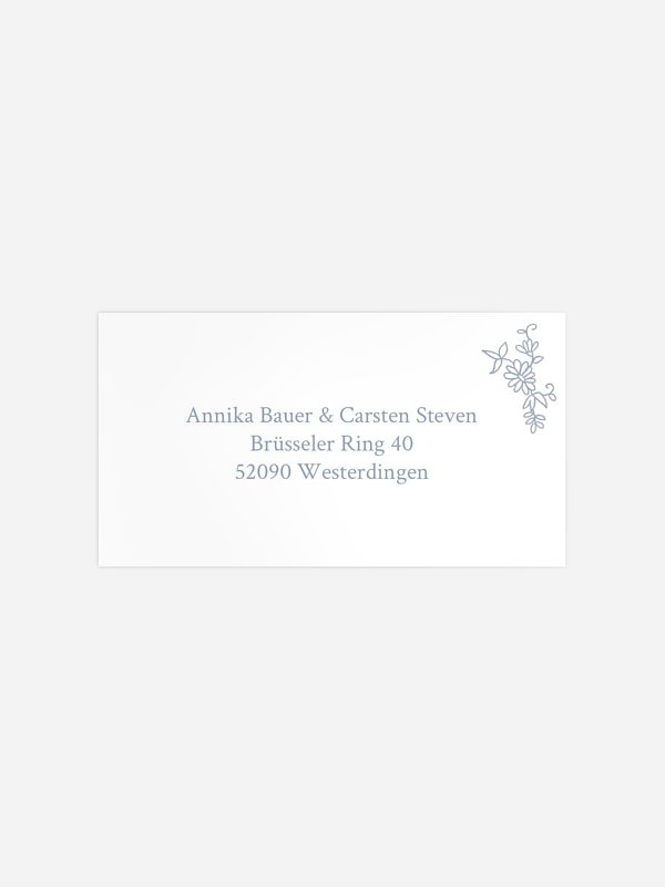 Personalisieren Sie die selbstklebenden Empfängeraufkleber "Zwischen Blüten" mit den Adressen Ihrer Gäste und bringen Sie sie direkt auf den Umschlägen an – schnell, ordentlich und stilvoll.