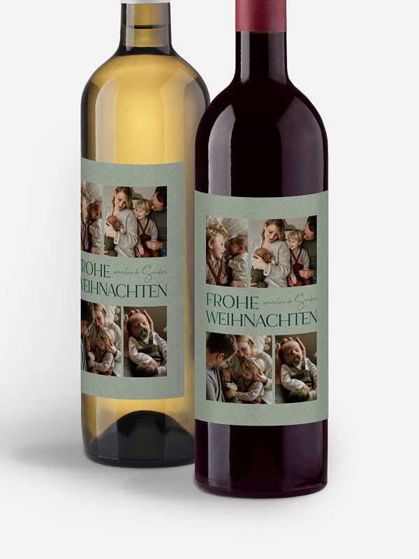 Ob für Wein, Champagner, hausgemachten Likör oder andere Getränke – mit unseren personalisierbaren, weihnachtlichen Flaschenetiketten "X-mas Memories" machen Sie aus jeder Flasche ein einzigartiges Geschenk, das sowohl stilvoll als auch persönlich ist. Beeindrucken Sie Ihre Familie, Freunde oder Kollegen mit diesem besonderen Detail und bringen Sie festlichen Glanz in Ihre Weihnachtszeit! Wählen Sie zusätzlich zwischen einer eleganten Silber- oder Goldveredelung, um Ihre Etiketten noch festlicher und edler zu gestalten. Diese luxuriösen Veredelungen verleihen Ihren Flaschen einen Hauch von Glamour und machen sie zu einem echten Highlight unter dem Weihnachtsbaum.