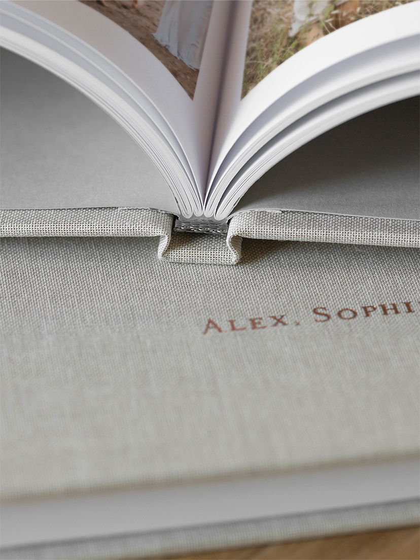 Jedes Fotobuch mit Stoffeinband wird von unseren Druckexperten von Hand veredelt. Mit präziser Heißfolienprägung wird der personalisierte Titel Buchstabe für Buchstabe auf dem Einband und dem Rücken aufgetragen – für ein luxuriöses Finish.
