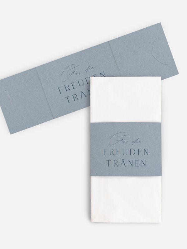 Gestalten Sie die hübschen Taschentuchhüllen "Big Date" individuell – perfekt für Freudentränen und kleine emotionale Momente während Ihrer Zeremonie.