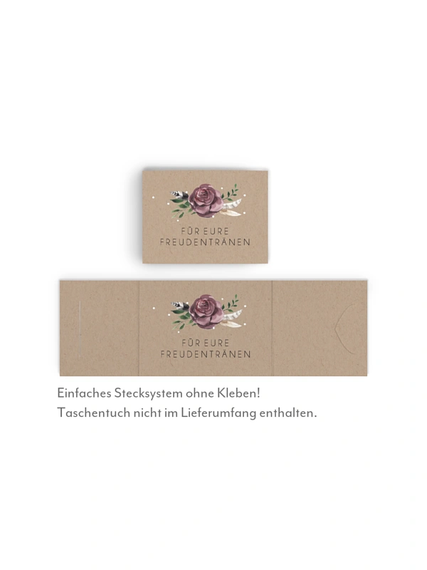 Sie planen eine Trauung im angesagten Boho-Look? Dann legen Sie Ihren Lieben für die Freudentränen Taschentücher mit der passenden Banderole im Design "Bohemian Summer" aus.