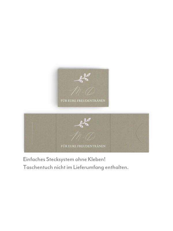Für die schönsten Tränen: Legen Sie Ihren Lieben Taschentücher in den Banderolen des Designs "Golden Branch" für die Trauung aus.
