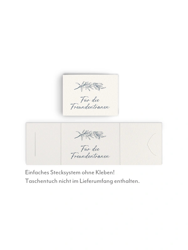 Die Banderolen für Freudentränen-Taschentücher "Mediterran" helfen Ihren Gästen charmant bei den emotionalen Momenten während Ihrer Trauung.