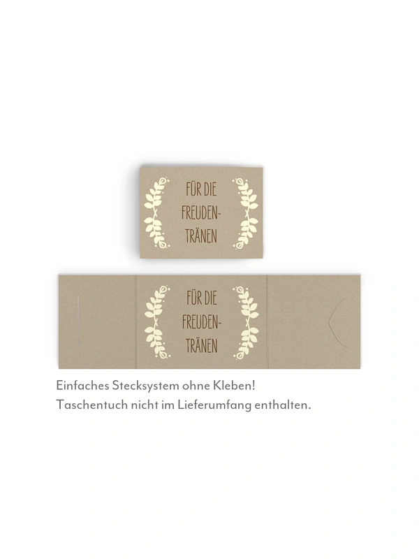Für die Freudentränen während der Trauung: Die Banderolen im Vintage-Design "Rustic Love" für Taschentücher.