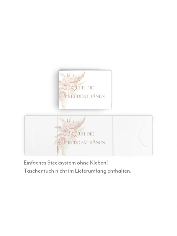 Die Banderolen für Freudentränen-Taschentücher im zarten Design "Tiny Blushes" können für jeden Ihrer Gäste bei der Trauung ausgelegt werden.