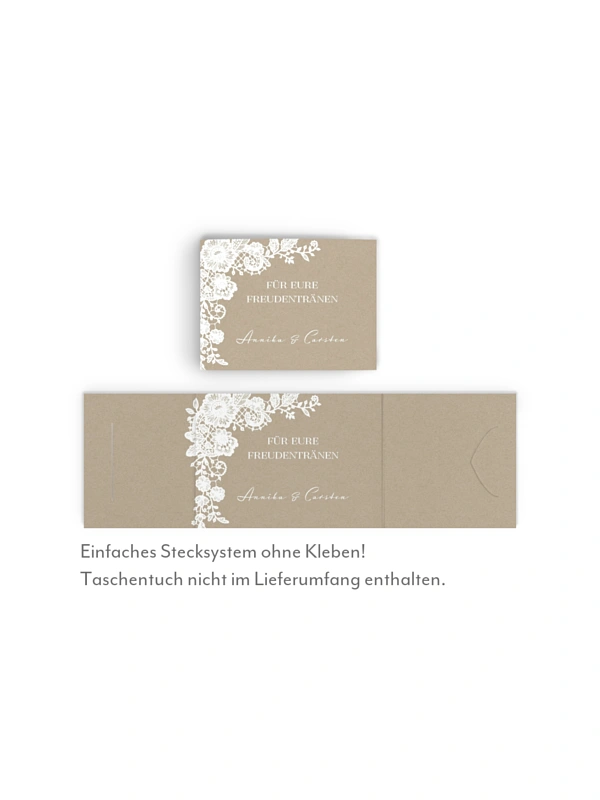 Für Freudentränen-Taschentücher: Die romantisch verspielten Banderolen im Design "Vintage Lace".