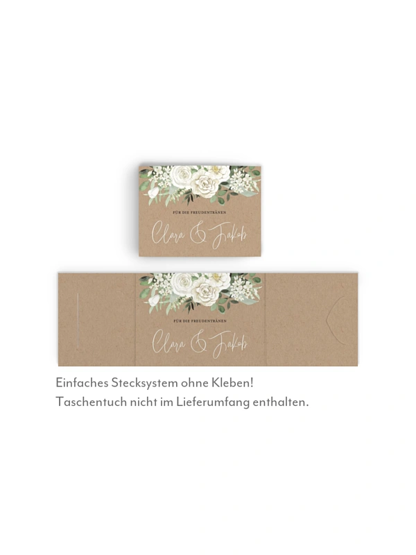 Für alle lieben Gäste die während Ihrer Trauzeremonie ein paar Freudentränen vergießen werden: Die Banderolen für Taschentücher "White Bouquet".