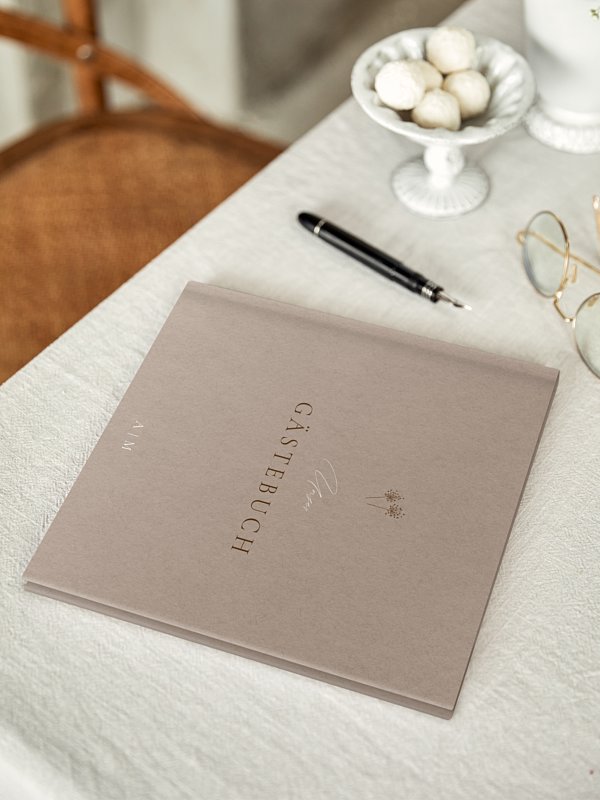 Bewahren Sie bleibende Erinnerungen an Ihren großen Tag mit dem Gästebuch "Mocca Moments". Ihre Gäste können persönliche Worte, Zeichnungen oder Fotos hinterlassen. Hinweise: Die Seiten sind weiß und glatt – ideal für Stifte, Marker oder Filzstifte ohne Durchdruck. Farben und Motive entsprechen der Darstellung im Gestaltungstool. Spitze oder Spitzeffekte sind rein gedruckt. Das Gästebuch wird separat verschickt.