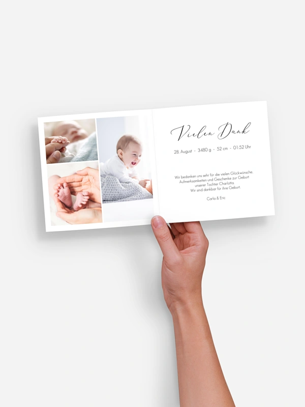 Mit der Geburtskarte "Kleines Wunder" haben Sie praktisch auf einen Blick alles Wichtige zusammengefasst. Dazu noch Platz für ein paar schöne Babyfotos. Was will man mehr?