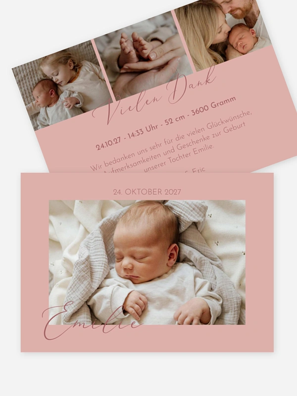 Teilen Sie ihr Glück mit Freunden und Verwandten! Die schlichte Geburtskarte "Nur Du" bietet Platz für große Fotos Ihres Babys.