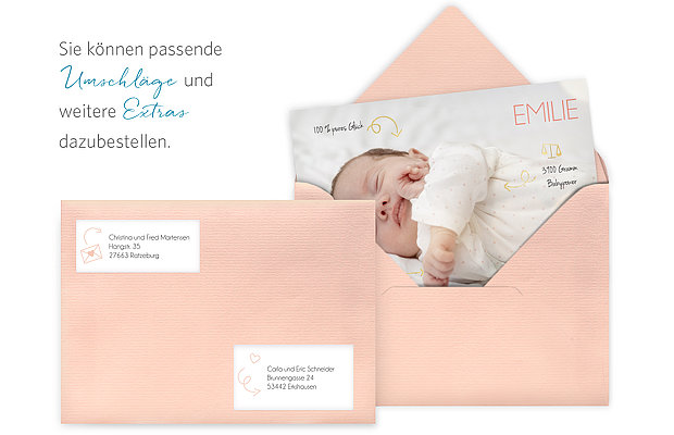 So einzigartig wie Ihr Baby: Die süße Geburtskarte "Unikat" setzt die Geburtsdaten Ihres Neugeborenen originell in Szene.