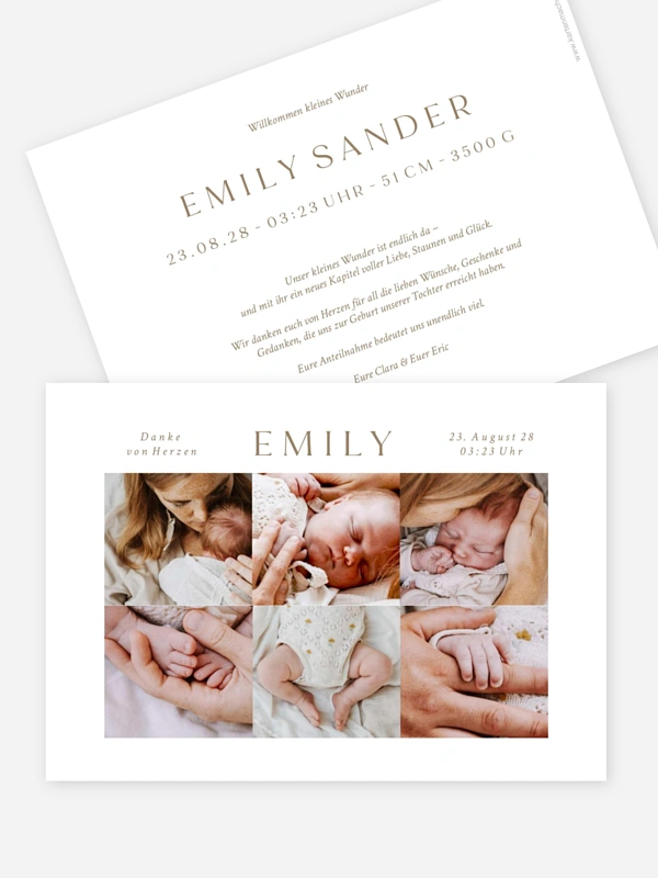 Mit der Geburtskarte "Unser ganzes Glück" teilst du die ersten kostbaren Momente mit deinem Baby auf liebevolle und persönliche Weise. Das warme Design rückt die Nähe und Geborgenheit eurer Familie in den Mittelpunkt und macht die Karte zu einem kleinen Schatz fürs Herz. Hochwertige Materialien und brillante Druckqualität sorgen dafür, dass deine Erinnerungen lange lebendig bleiben.