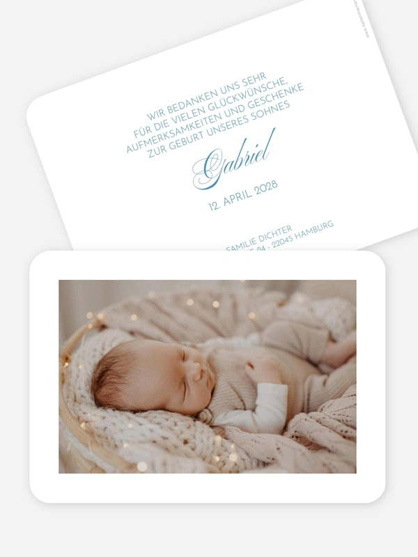 Endlich ist euer kleines Wunder da und bereit, die Welt mit euch zu entdecken. Mit unserer Geburtskarte "Zarte Ankunft" verkündet ihr dieses ganz große Glück auf besonders liebevolle Weise an eure Lieblingsmenschen. Die Gestaltung gelingt dir in unserem Tool ganz einfach und mühelos, sodass mehr Zeit zum Kuscheln bleibt. Wähle für deine Post zur Geburt eines unserer hochwertigen Papiere aus, um eurem Moment den passenden Rahmen zu geben. Gestalte jetzt dein Set direkt online.