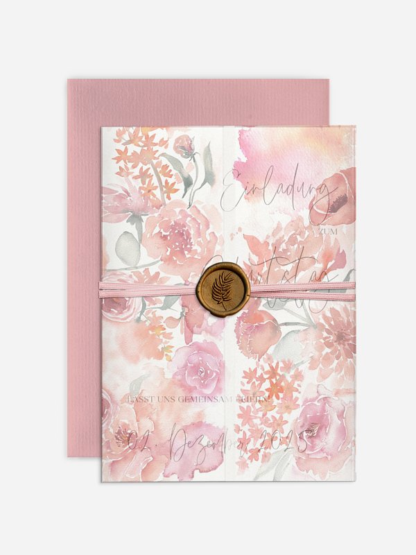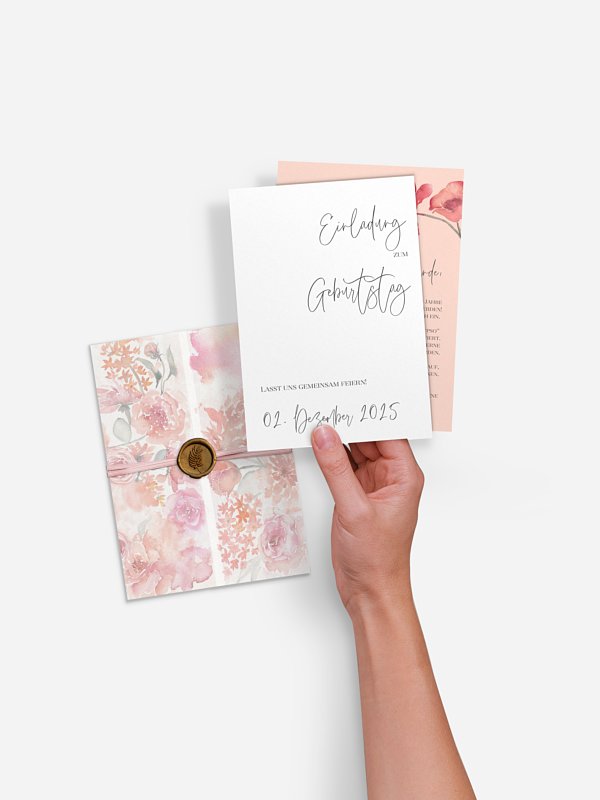 Lassen Sie Blumen sprechen: Die Karte "Blütentanz" besticht mit wundervollen floralen Elementen und lädt somit auf stilvolle Weise zu Ihrem Geburtstagsfest ein.