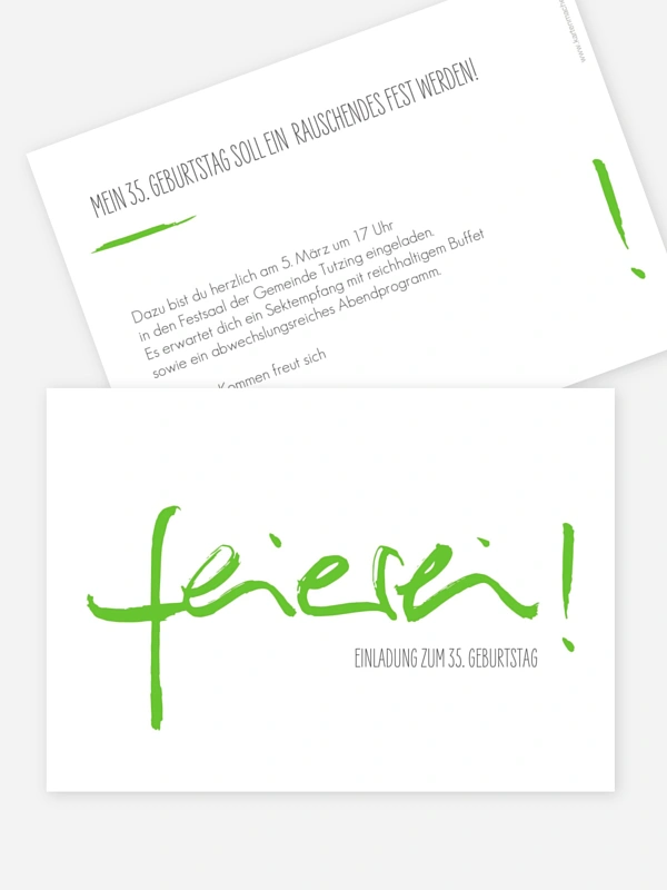 Auf stilvolle und moderne Weise zum Geburtstag einladen: Das gelingt Ihnen mit unserem ansprechenden Design "Feierei" garantiert!