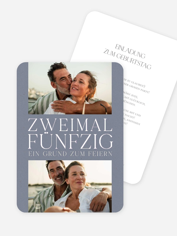 Die Geburtstagseinladung „Gemeinsam feiern“ fängt genau das ein, worum es geht: Nähe, Zusammenhalt und gemeinsame Erinnerungen. Mit persönlicher Bildsprache und ruhiger Typo wird aus der Einladung ein echtes Stück Lebensgefühl – ehrlich, herzlich und ganz bei euch. Diese Einladung zum 50. Geburtstag macht Lust darauf, zusammen anzustoßen, zu lachen und den Moment zu teilen. Dank der einfachen Konfiguration im Gestaltungs-Tool gestaltest du alles unkompliziert selbst, wir kümmern uns um hochwertige Papiere und eine schnelle Lieferung.