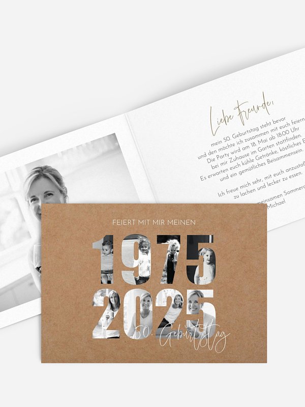 Individueller kann man nicht einladen: Bitten Sie Ihre Freunde mit der fotoreichen Karte "Jahre" bei Ihrer Geburtstagsparty in 2023 Ihre Gäste zu sein.
